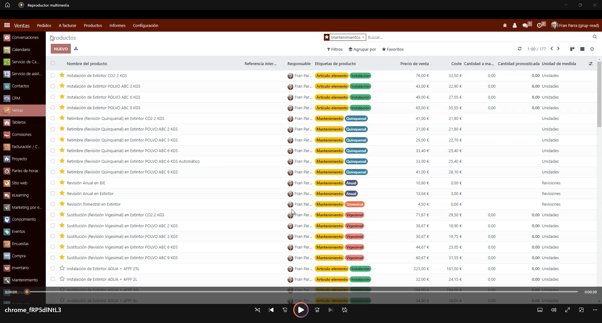 - Tarifa PVP -> Es la tarifa por defecto que se carga y sobre la que se basan el resto de tarifas. Los precios introducidos aquí se han basado en históricos y promedios de facturación por segmento y servicio.